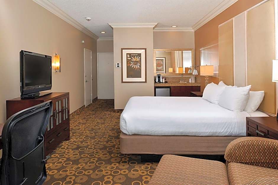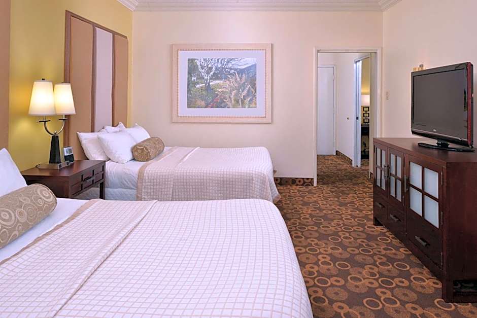This room includes 1 queen bed and a pullout couch that can be used as a sofa bed.